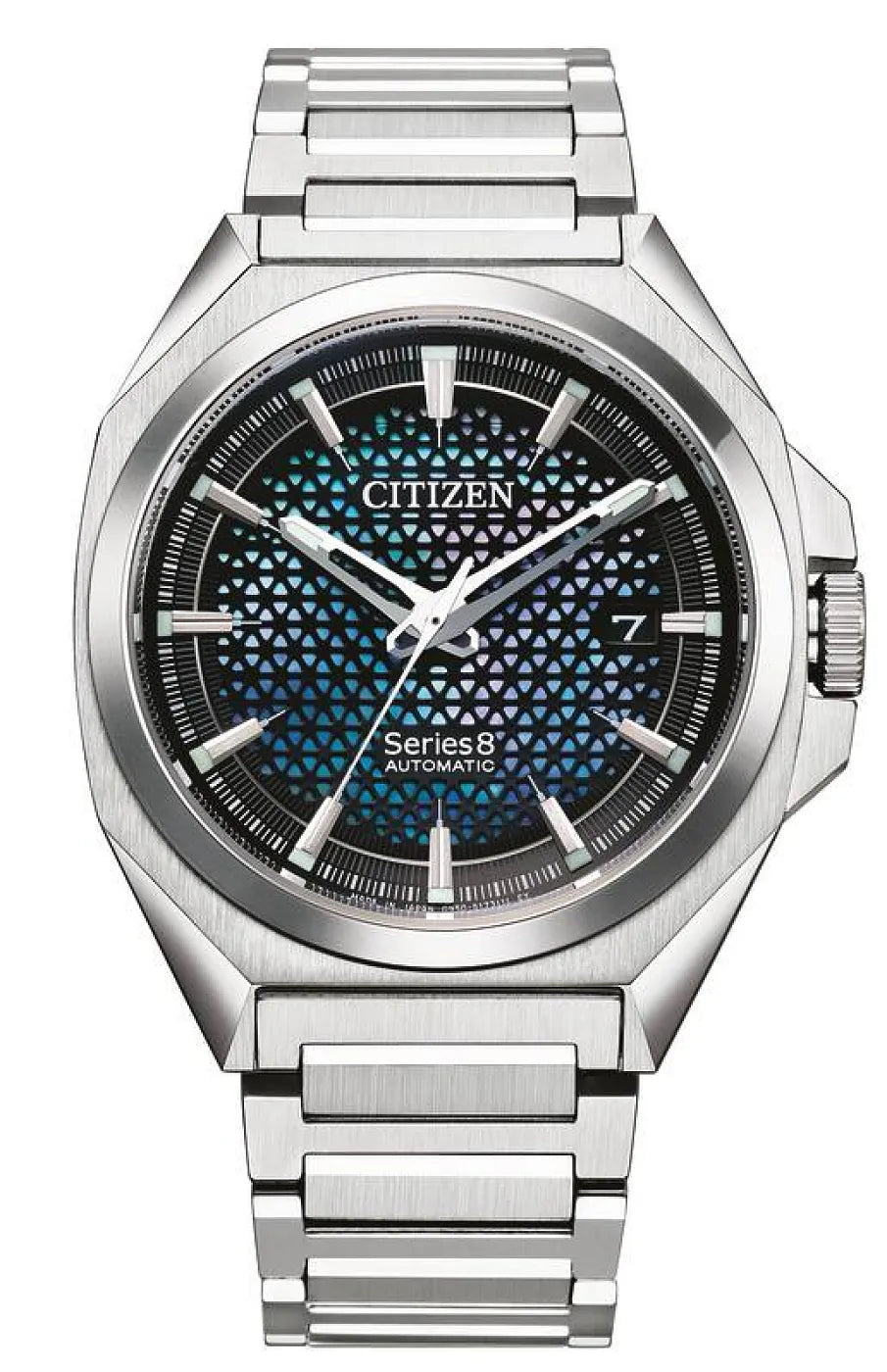 Citizen Series 8 Automatic NA1010-84X -automaattikellon yhdistelmä pelkistettyä muotoilua ja mattapintaista harjattua terästä antavat Series 8 malliston kellolle modernin ja urheilullisen ilmeen jokapäiväiseen käyttöön. Kellossa on sinimusta kellotaulu heijastuksen estävällä safiirilasilla, jossa on päivyri kello kolmen kohdalla. Kuoren leveys on 40 mm ja ranneke on valmistettu ruostumattomasta teräksestä. Kello on vesitiivis 100 metriin asti (10 bar).