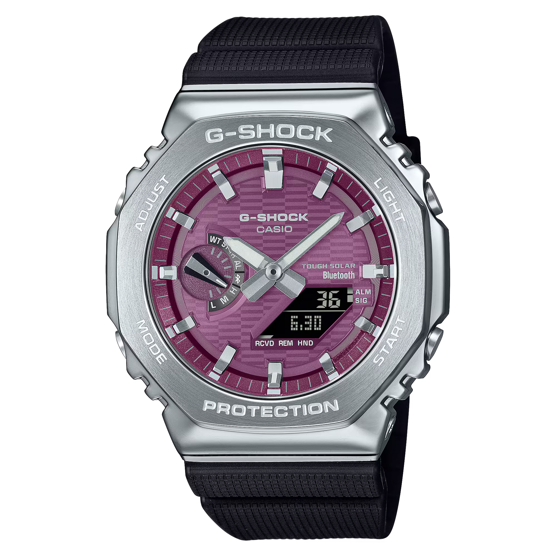 Näyttävällä metallikehällä varustettu Casio G-Shock GBM-2100 tarjoaa Smartphone Linkin ja Tough Solar -latausjärjestelmän, kaikki samassa kompaktissa paketissa. Kuoressa ja rannekkeessa käytetyt tärkeimmät hartsikomponentit on valmistettu ympäristöystävällisestä biopohjaisesta hartsista.