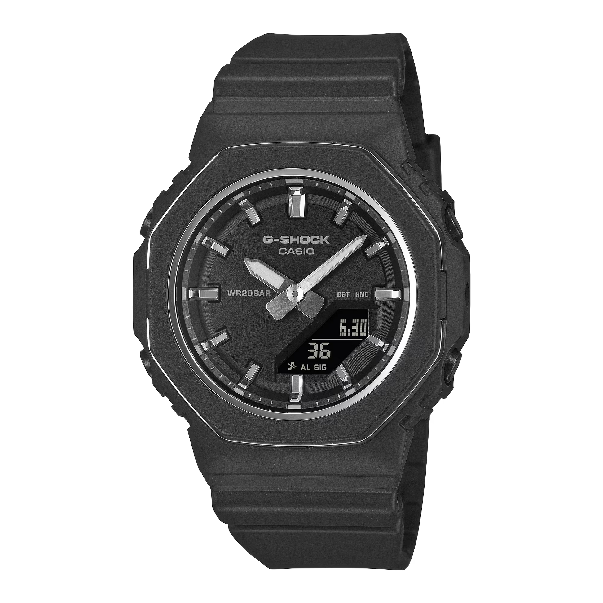 Casio G-Shock -kellojen suositun ana-digi -malliston todellinen joukosta erottuja Casio G-Shock GMA-P2110-1AER sisältää ohuen metallirenkaan, joka heijastaa valoa sekä kehän sisä-, että ulkoreunoista.