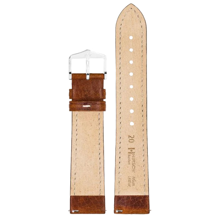 Hirsch Boston nahkaranneke on perinteisesti ruskettunut, kestävä ja hylkii vettä.