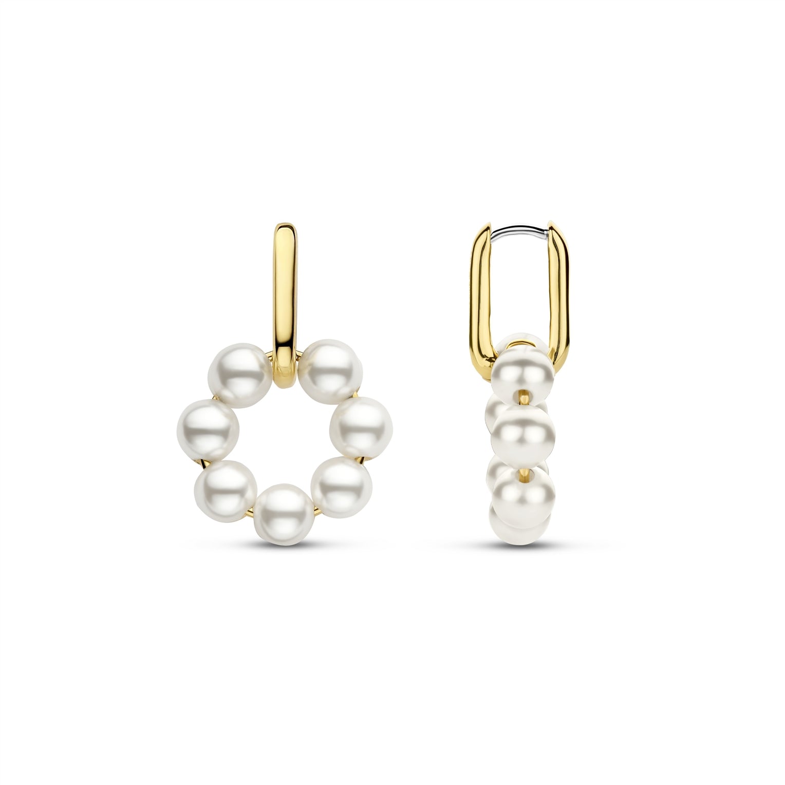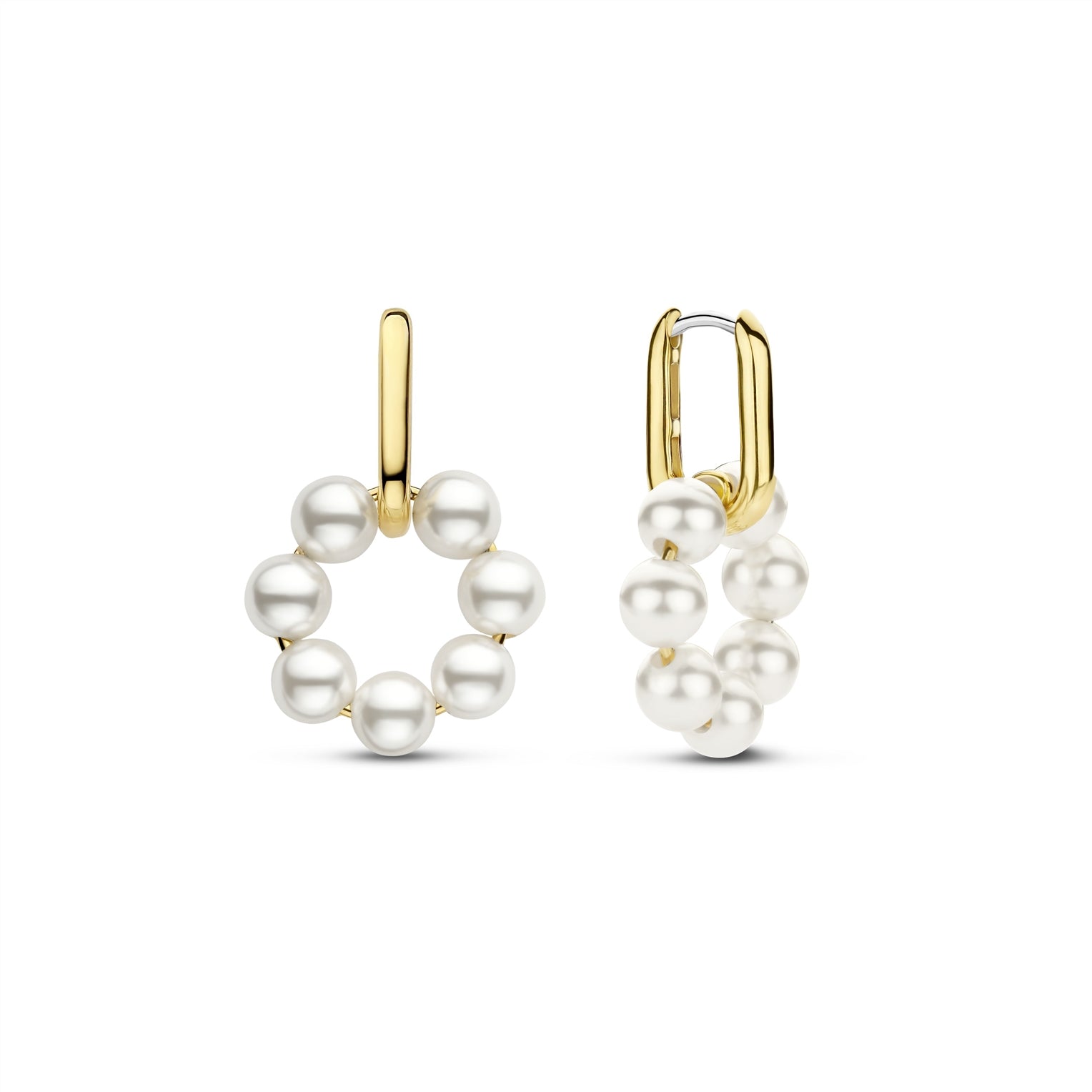 Nämä TI SENTO -kullatut helmikorvakorut on koristeltu pienillä kiiltävillä helmillä, jotka ovat kuin soikeita halauksia.