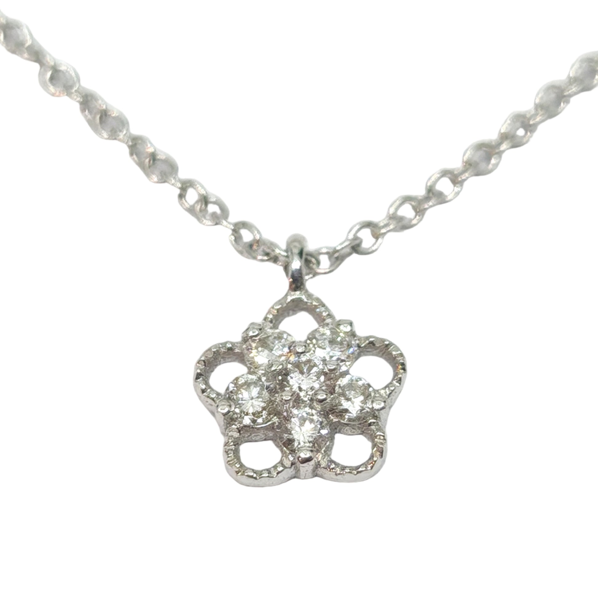 18K valkokullasta valmistettu timanttiriipus jossa kaunis kukkakuvio.