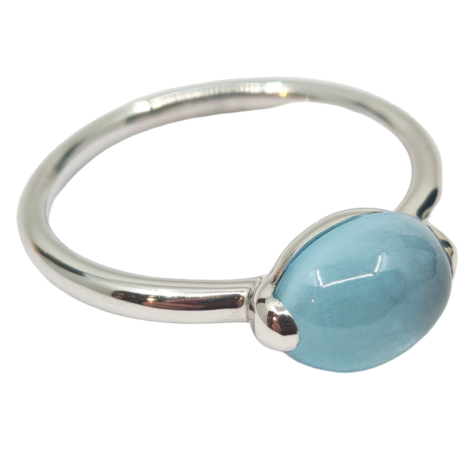 18K valkokullasta valmistettu upean pelkistetty ja moderni sormus, johon istutettu ovaali topaasi.